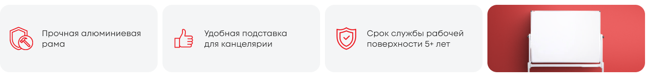 Доска очень удобна в работе, легко вращается и перемещается благодаря колесикам. Хорошо держит магниты, поверхность ровная, маркеры стираются без проблем. Рама прочная, вес приемлемый для переноски.