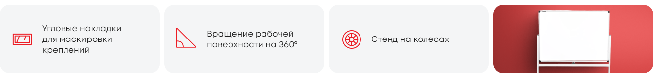Доска прочная и удобная, идеально подходит для совещаний, вращение и колёса много облегчают работу.