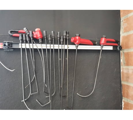 Почему-то по краям слева справа можно было добавить ещё магнитов но там пустое пространство примерно по 5 см. Таким образом -10 см от рабочей длины. Неудобно и нечестно. Вы не можете повесить отвертки до самого края