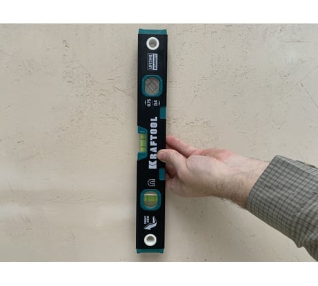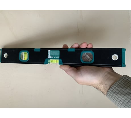 Отличный крепкий уровень, сделан добротно. Два неодимовых магнита надежно крепят к металлу. Три информативные капсулы, пузырек при встряске не разделяется (как в дешманских уровнях). По бокам надежные резиновые заглушки. Порадовал вертикальный глазок с окном на торцевой плоскости устраняет ошибки углового зрения, увеличивая скорость и удобство проведения измерений. Покупкой доволен, фотки прилагаю.