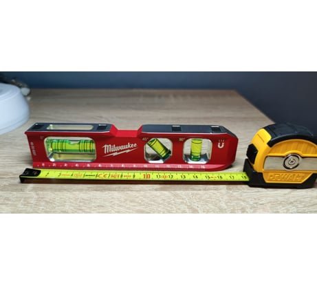 Компактный, сделан добротно, измерительная шкала до 15 см, магниты, выемка.