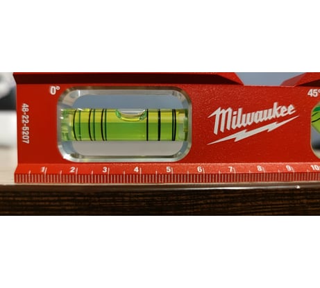 Немного неприятно, что уровень имеет погрешность, внутри колб плавают мелкие частицы неизвестно чего... Данный уровень понравился больше, чем двадцатисантиметровый Эмпайр (Empire), который тоже сделан монолитно из алюминия, но показался для меня немного длиннее, теряя свою изящность по сравнению с Милуоки, так как предназначался для носки в кармане.