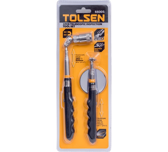 Магнитный телескопический захват TOLSEN 245-800 мм, до 2.2 кг, LED, гибкий, зеркало телескоп. Ø 50 мм, 240-700 мм 66005