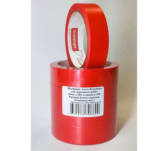 Малярная лента для наружных работ Brandtape 25х25 стойкая к УФ до 3 дней 100 красная (упаковка 4 шт.) 4631178306609