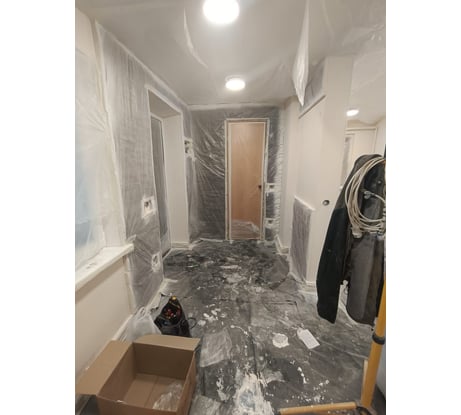 Обычная малярка, но качество выше среднего. Отлично держится на обоях при покраске потолка.