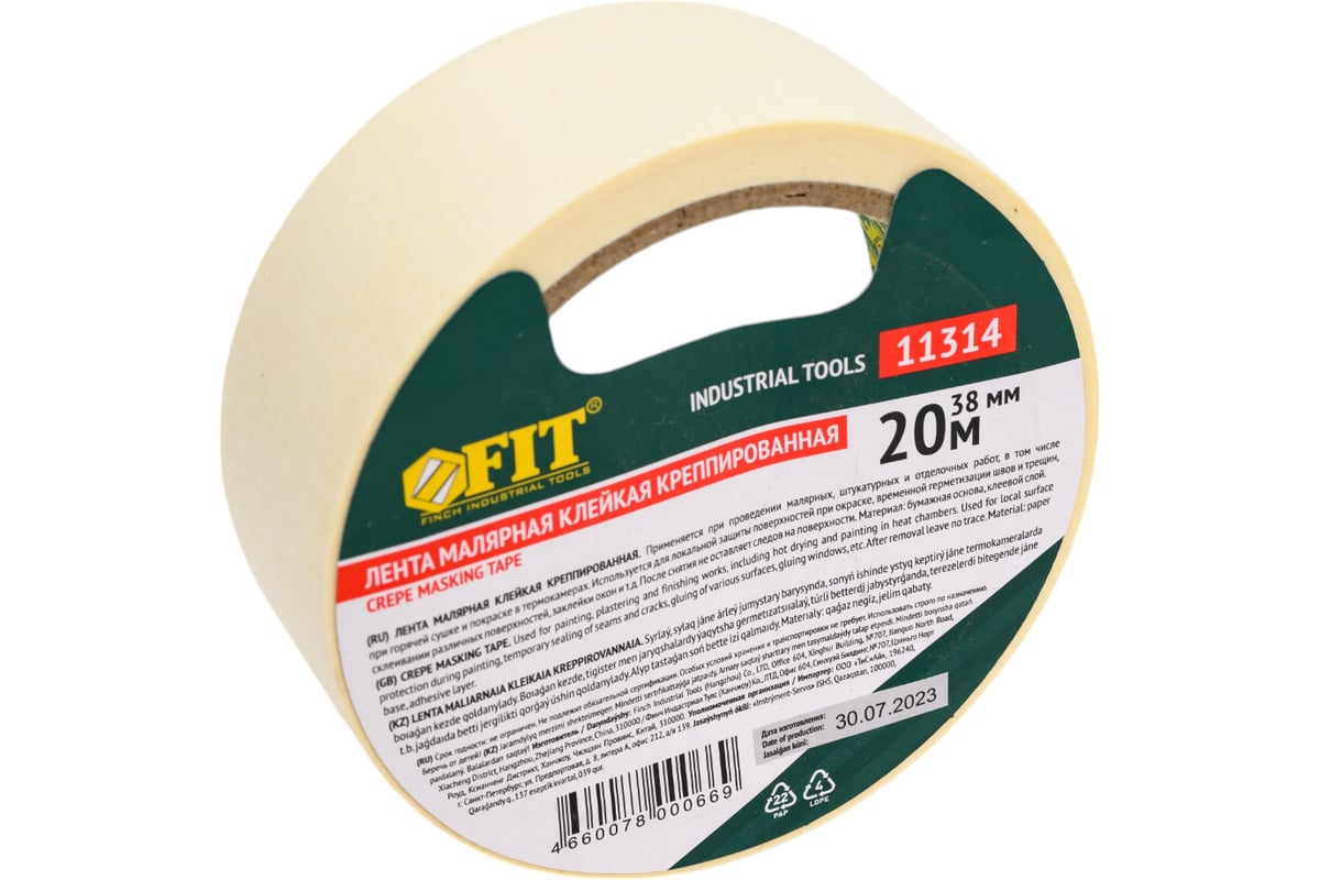 Технические характеристики малярной ленты FIT креппированная самоклеющаяся 38 мм х 20 м