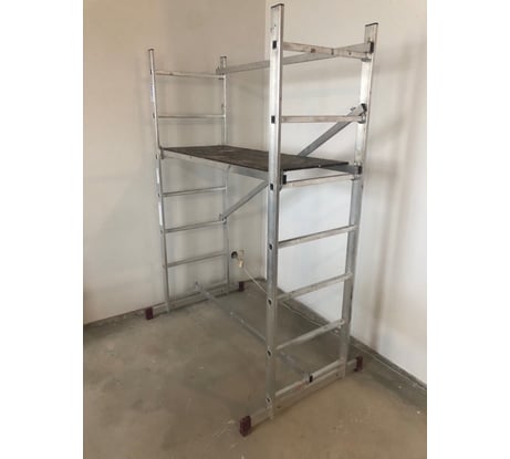 Легкие, прочные, можно переносить одному (мужику) в пределах помещения. все комплектно, все совпало. Работа с площадки на рекомендованном максимуме комфортна до 3.2м (1.8м/110кг) Конструкция продумана, площадка и распорки стоят на ступеньках, а не на условных болтах в боковинах, работающих на срез и разбалтывание. Если конкретно подтянуть барашки - жесткость практически монолит. Женщины также в восторге. На площадку залазить с табурета - не особо напрягает. На верхнюю распорку можно много чего полезного навешать.