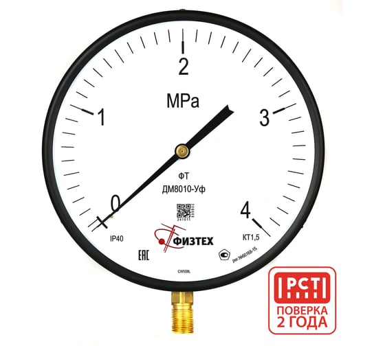 Манометр котловой ПО Физтех, АО ДМ8010-Уф 0-4 МПа кт.1,5 d.250 IP40 M20_1,5 РШ 4687205624574