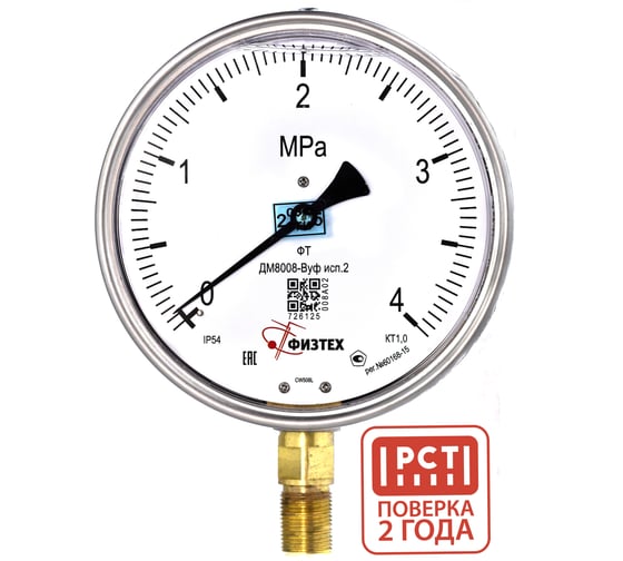 Манометр виброустойчивый ПО Физтех, АО ДМ8008-ВУф исп 2 0-4 МПа кт.1,0 d.160 IP54 M20x1,5 РШ, Силикон 4687205455208