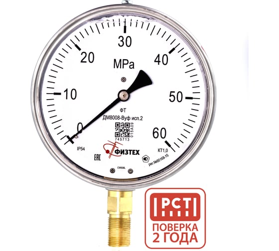 Манометр виброустойчивый ПО Физтех, АО ДМ8008-ВУф исп 2 0-60 МПа кт.1,0 d.160 IP54 M20x1,5 РШ, Глицерин 4687205454812
