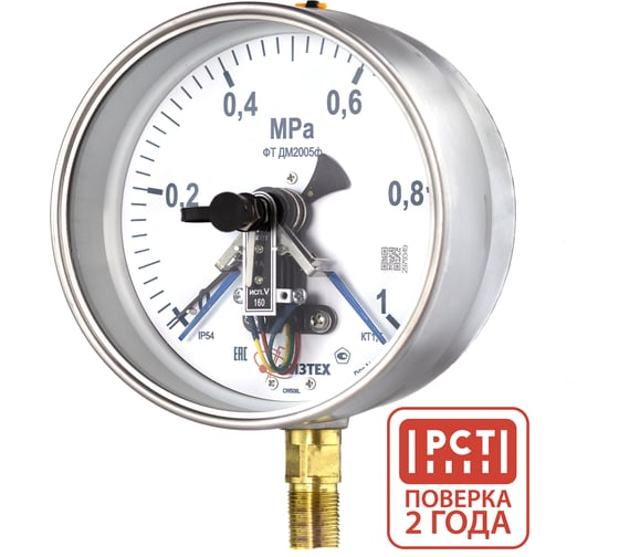 Манометр электроконтактный пылевлагозащищенный ПО Физтех, АО ДМ2005ф исп V 0-1 МПа кт.1,5 d.160 IP54 M20_1,5 РШ SG 4687205622358