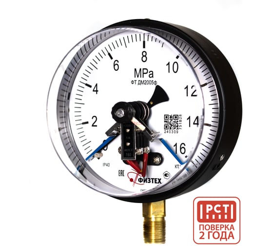 Манометр электроконтактный ПО Физтех, АО ДМ2005ф исп V 0-16 МПа кт.1,5 d.160 IP40 M20_1,5 РШ 4687205622471