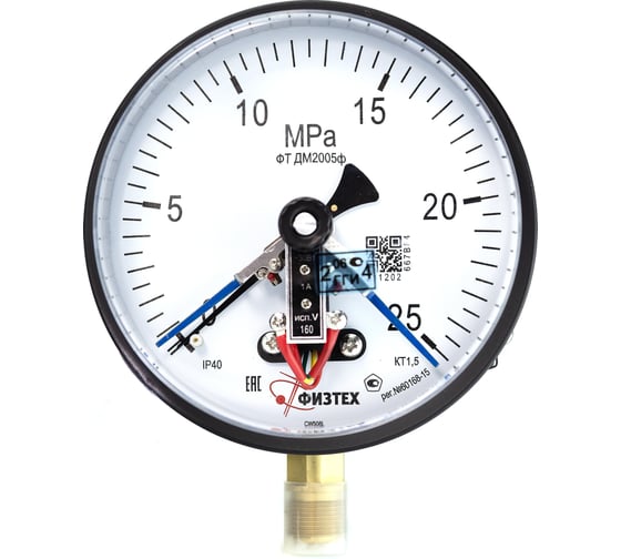 Манометр электроконтактный ПО Физтех, АО ДМ2005ф исп V 0-25 МПа кт.1,5 d.160 IP40 M20х1,5 РШ 4687205178091
