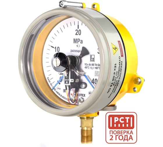 Манометр электроконтактный взрывозащищенный ПО Физтех, АО ДМ2005ф Сг 1Exd исп V 0-40 МПа кт.1,5 d.160 IP54 M20_1,5 РШ 4687205623126