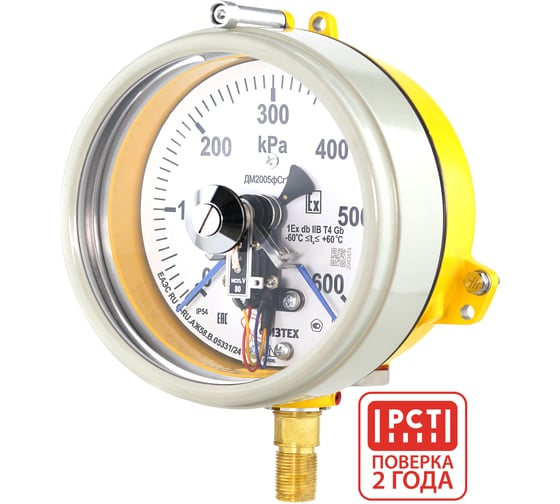 Манометр электроконтактный взрывозащищенный ПО Физтех, АО ДМ2005ф Сг 1Exd исп V 0-600 кПа кт.1,5 d.160 IP54 M20_1,5 РШ 4687205623171