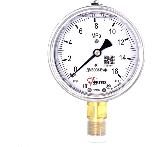 Манометр виброустойчивый ПО Физтех, АО ДМ8008-ВУф 0-16 МПа кт.1,0 d.100 IP54 M20_1,5 РШ, Глицерин 4687205640796