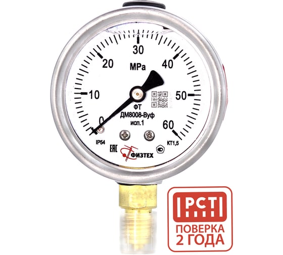 Манометр виброустойчивый ПО Физтех, АО ДМ8008-ВУф исп 1 0-60 МПа кт.1,5 d.63 IP54 M12x1,5 РШ, Силикон 4687205454829