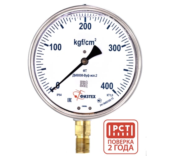 Манометр виброустойчивый Физтех ДМ8008-ВУф_исп_2 0-400 кгс/см2 кт.1,0 d.160 IP54 M20_1,5 РШ, Глицерин 4687206463707