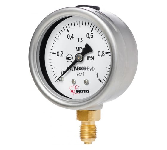 Манометр ПО Физтех, АО ДМ8008-ВУф исполнение 1, 0-25 МПа, кт 1.5, d.63, IP54 M12x1,5 РШ Б/запол 4687205644237