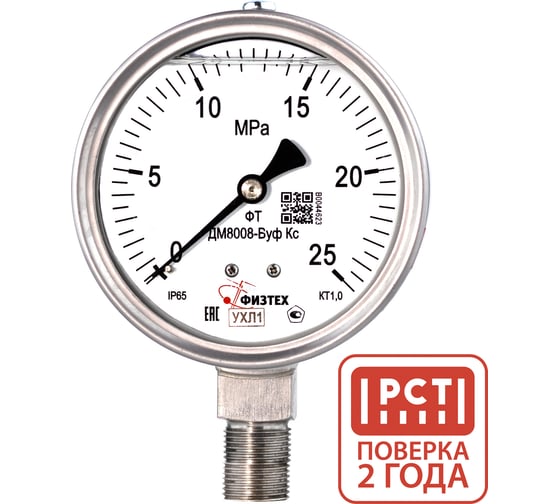 Манометр коррозионностойкий ПО Физтех, АО ДМ8008-ВУф Кс 0-25 МПа кт.1,0 d.100 IP65 M20_1,5 РШ SG, Силикон 4687205720689