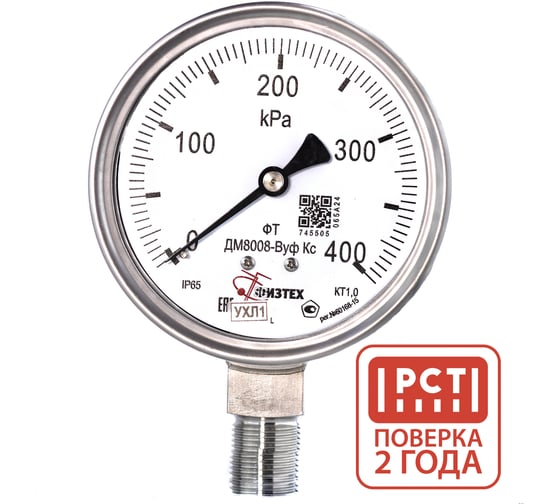 Манометр коррозионностойкий ПО Физтех, АО ДМ8008-ВУф Кс 0-400 кПа кт.1,0 d.100 IP65 M20_1,5 РШ SG, Б/запол 4687205720788