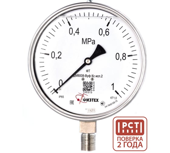 Манометр коррозионностойкий ПО Физтех, АО ДМ8008-ВУф Кс исп 2 0-1 МПа кт.1,0 d.160 IP65 M20_1,5 РШ SG, Глицерин 4687205724496