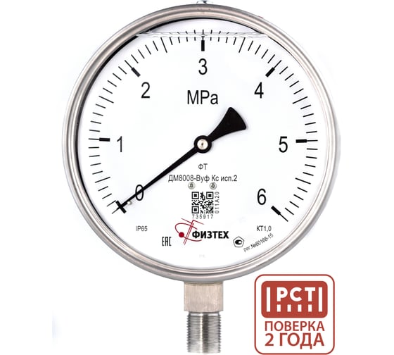 Манометр коррозионностойкий ПО Физтех, АО ДМ8008-ВУф Кс исп 2 0-6 МПа кт.1,0 d.160 IP65 M20_1,5 РШ SG, Силикон 4687205724861