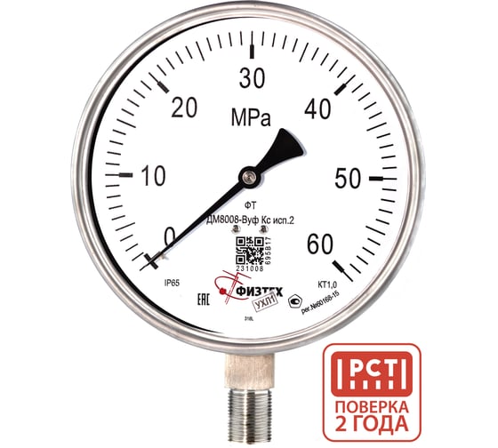 Манометр коррозионностойкий ПО Физтех, АО ДМ8008-ВУф Кс исп 2 0-60 МПа кт.1,0 d.160 IP65 M20_1,5 РШ SG, Б/запол 4687205724878