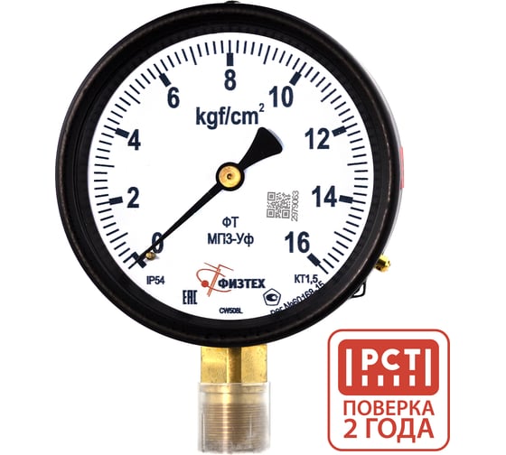 Манометр пылевлагозащищенный ПО Физтех, АО МП3-Уф 0-16 кгс/см2 кт.1,5 d.100 IP54 M20_1,5 РШ 4687206463431
