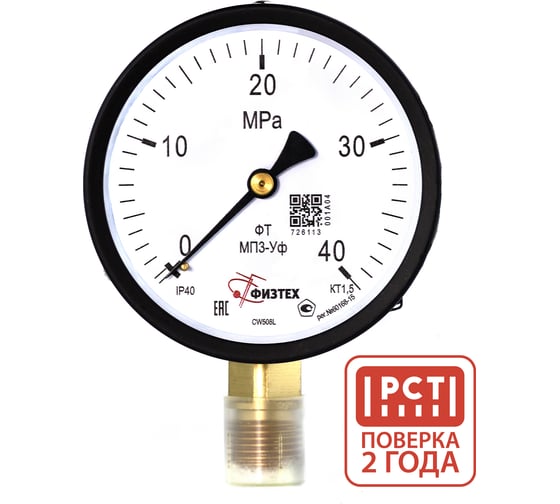 Манометр технический ПО Физтех, АО МП3-Уф 0-40 МПа кт.1,5 d.100 IP40 M20_1,5 РШ 4687205628749