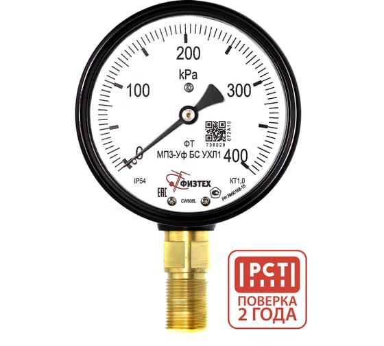 Манометр пылевлагозащищенный ПО Физтех, АО МП3-Уф 0-400 кПа кт.1,0 d.100 IP54 M20_1,5 РШ БС УХЛ1 4687205628770