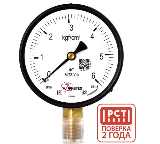 Манометр технический ПО Физтех, АО МП3-Уф 0-6 кгс/см2 кт.1,5 d.100 IP40 M20_1,5 РШ 4687205638526