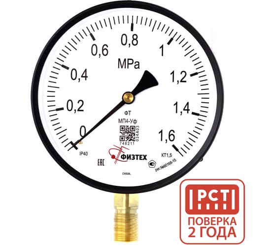 Манометр технический ПО Физтех, АО МП4-Уф 0-1,6 МПа кт.1,5 d.160 IP40 G1/2 РШ 4687205629685