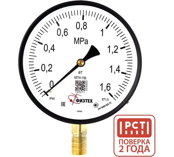 Манометр ПО Физтех, АО МП4-Уф 0-10 кгс/см2 кт.1,5 d.160 IP40 M20_1,5 РШ 4687205638625