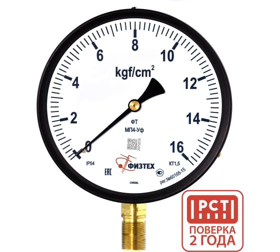 Манометр пылевлагозащищенный МП4-Уф 0-16 кгс/см2 кт.1,5 d.160 IP54 M20х1,5 РШ, ПО Физтех, АО 4687206463462