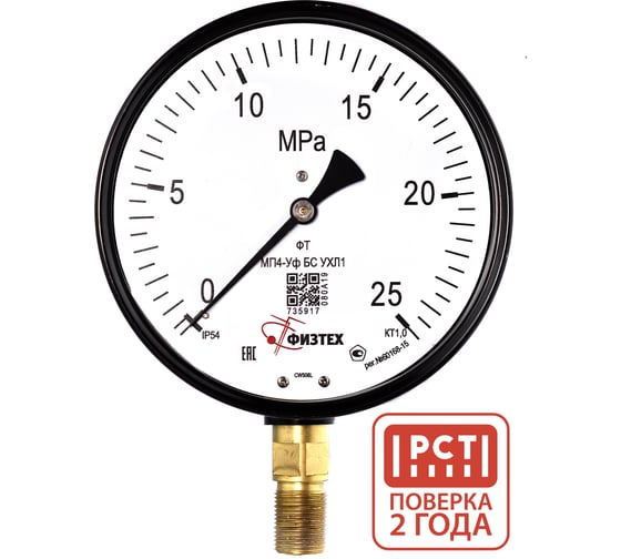 Манометр пылевлагозащищенный ПО Физтех, АО МП4-Уф 0-25 МПа кт.1,0 d.160 IP54 M20_1,5 РШ БС УХЛ1 4687205630087