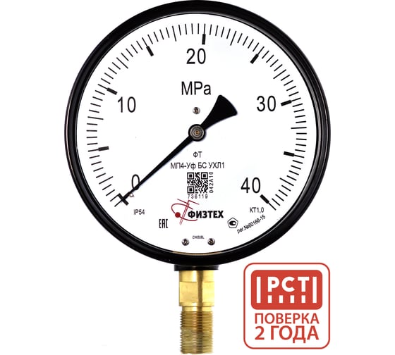 Манометр пылевлагозащищенный ПО Физтех, АО МП4-Уф 0-40 МПа кт.1,0 d.160 IP54 M20_1,5 РШ БС УХЛ1 4687205630285