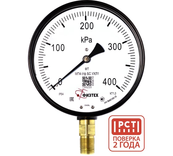 Манометр пылевлагозащищенный ПО Физтех, АО МП4-Уф 0-400 кПа кт.1,0 d.160 IP54 M20_1,5 РШ БС УХЛ1 4687205630360