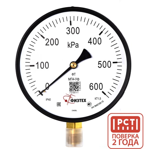 Манометр технический ПО Физтех, АО МП4-Уф 0-600 кПа кт.1,5 d.160 IP40 G1/2 РШ 4687205178688