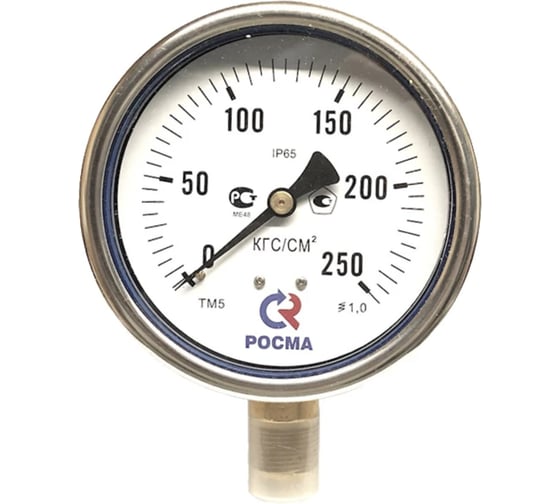 Промышленный манометр Росма в корпусе из нержавеющей стали с возможностью гидрозаполнения (виброустойчивый). Применяется для измерения давления неагрессивных к медным сплавам жидких и газообразных, не вязких и не кристаллизующихся измеряемых сред с температурой до 150°C. Этот тип манометра может использоваться в условиях повышенной вибрации и при измерении переменного давления. Повышенная устойчивость к воздействию окружающей среды - степень защиты прибора IP65.