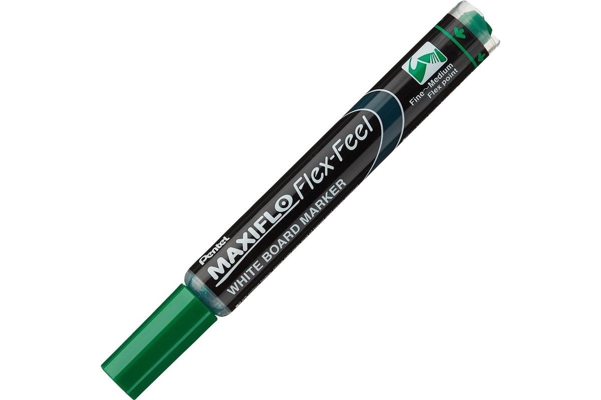 Маркер для белых досок Pentel Maxiflo Flex-Feel MWL5SBF-DX гибкий наконечник, 1 - 5 мм, перо круглое, зеленый 610123