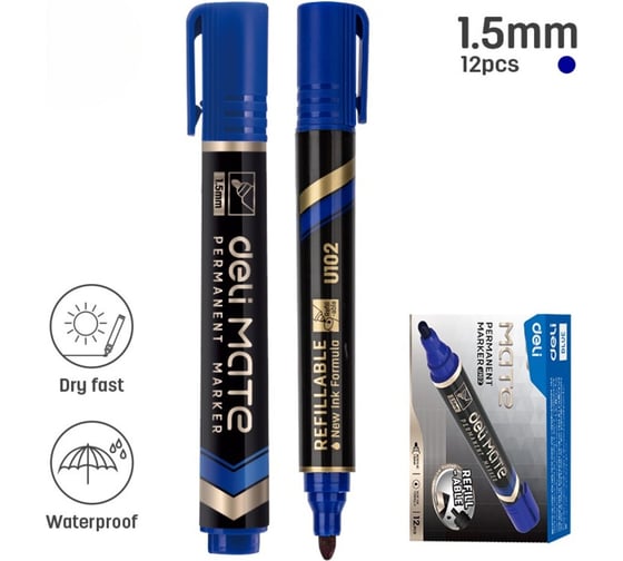 Практичный и надежный перманентный маркер Deli Mate с круглым наконечником диаметром 1.5 мм — идеально подходит для точной, яркой и стойкой маркировки самых разнообразных поверхностей. Надежный инструмент для работы дома, в офисе или на производстве.