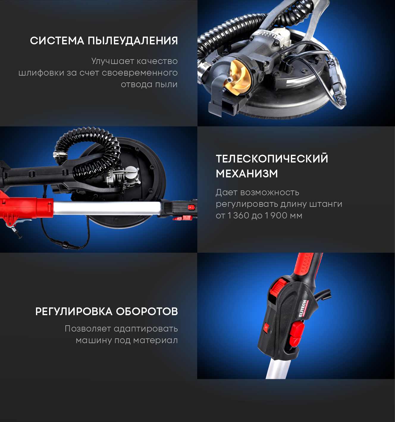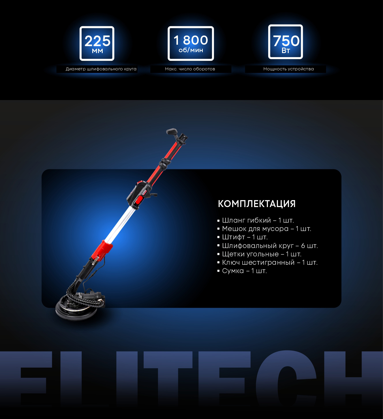Машина для шлифовки стен Elitech DWS 1923ELV (E2213.056.01) HD 206305