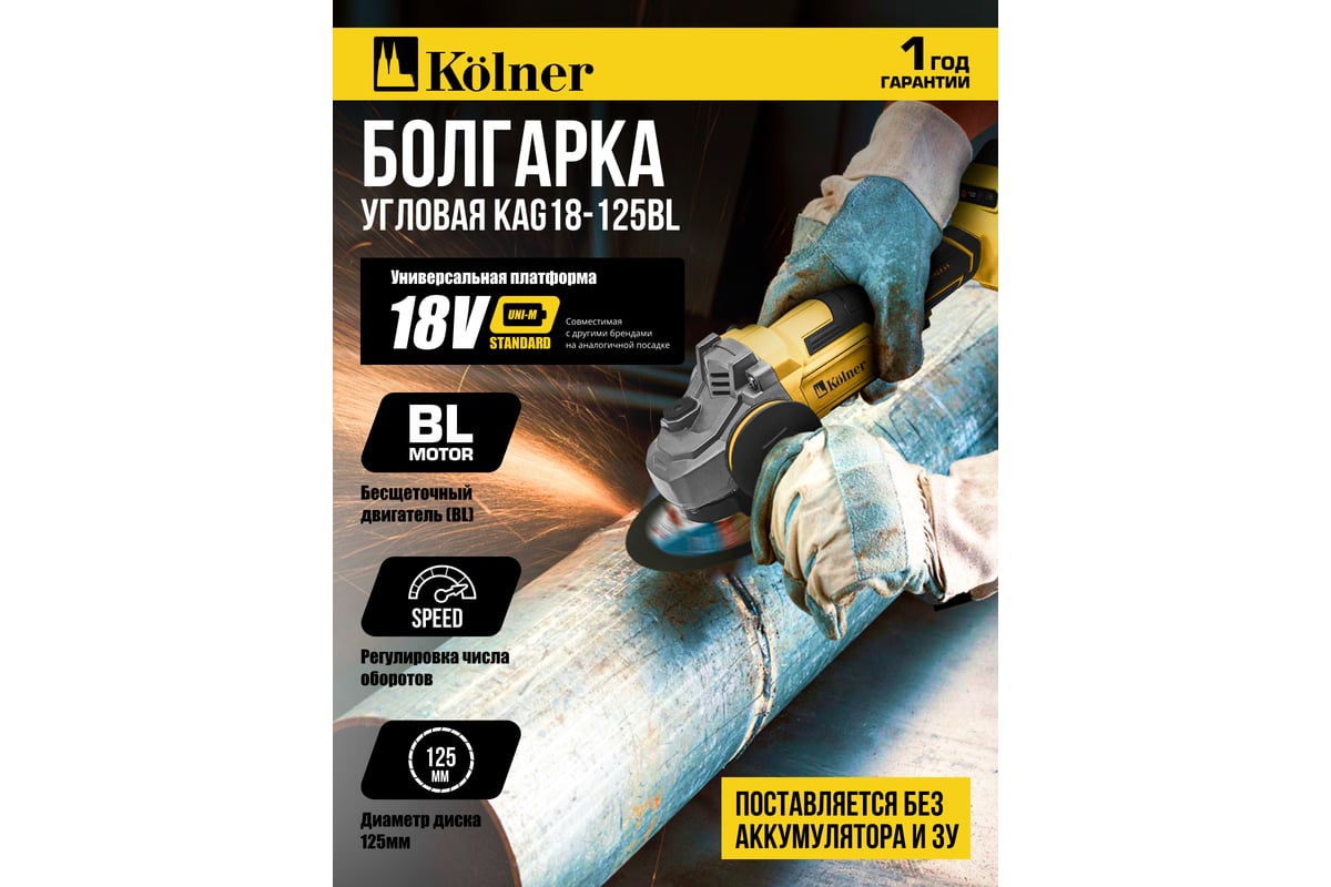 Машина углошлифовальная аккумуляторная Kolner УШМ 18V UNI-M, BL, 125 мм, KAG 18-125BL, 5200-7500 об/мин 8020700026
