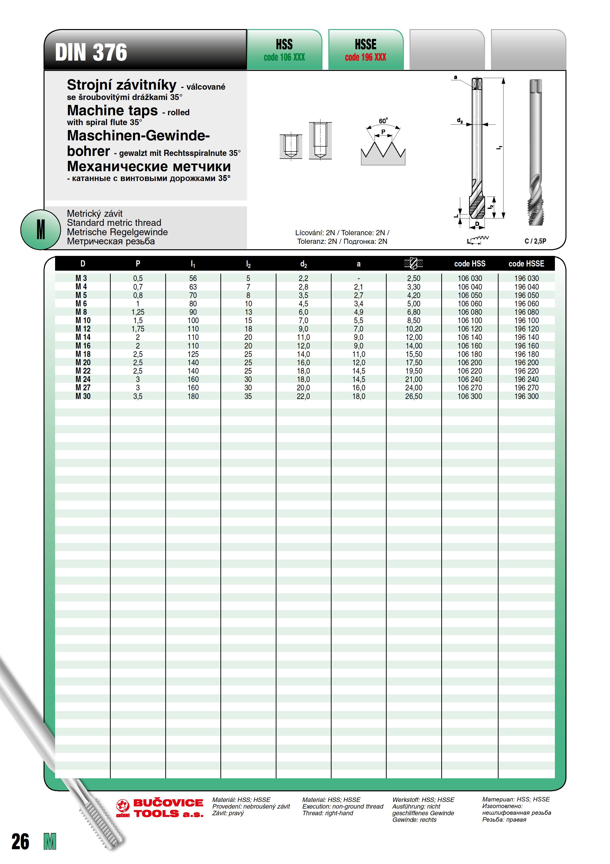 Технические характеристики метчика Bucovice Tools 196160