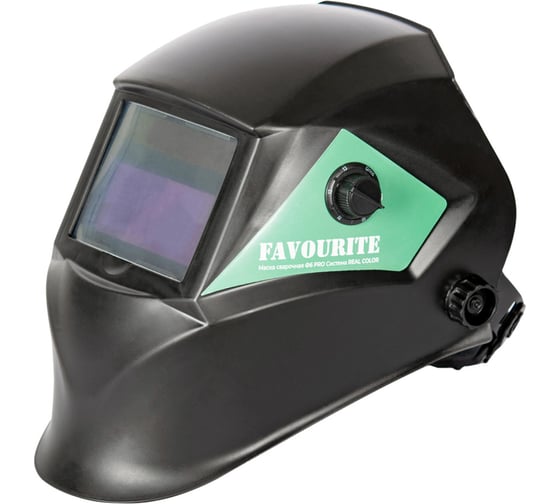 Маска сварочная с внешней регулировкой (DIN9-13; 93-43 мм; режим шлифования; Real Color) FAVOURITE Ф6 PRO предназначена для защиты глаз, лица и головы сварщика от искр, брызг, ультрафиолетового (УФ) и инфракрасного (ИК) излучения при выполнении электросварочных работ.