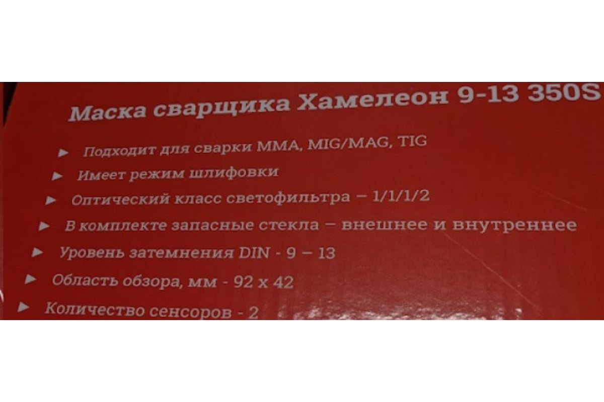 - светофильтр хамелеон (автоматическое затемнение при зажигании сварочной дуги, не нужно надевать и снимать маску) - экономия времени и исключение риска «поймать зайчика»;