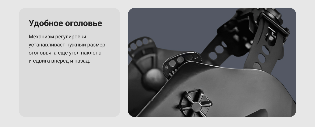 4 датчика включения светофильтра с разных сторон. Удобная настройка обхвата головы. Достаточно широкий диапазон регулировки срабатывания и затемнения.