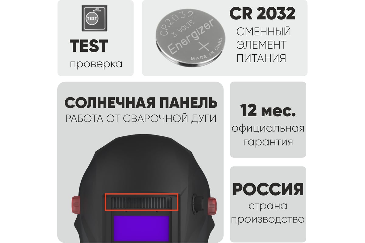 Внутренние плавные регулировки чувствительности и задержки позволяют настроить маску под любые условия. Режим GRIND (шлифовка) дает возможность использовать маску при работе с УШМ без срабатывания светофильтра.
