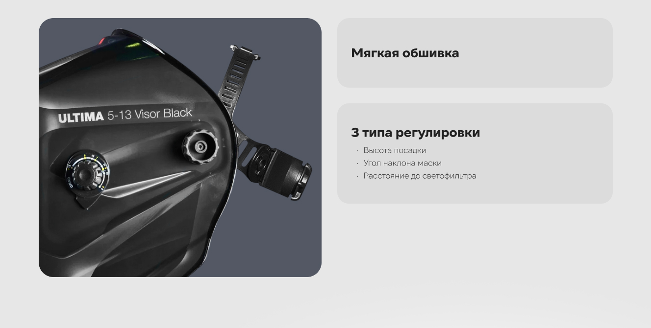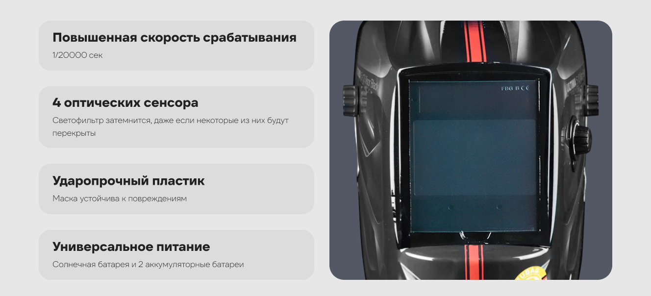 Отличная регулировка по креплению на голове. Прекрасный большой экран. Варил полуавтоматом - отлично. Варил аргоном - отлично. Старая маска открывалась. Эта стабильно работает